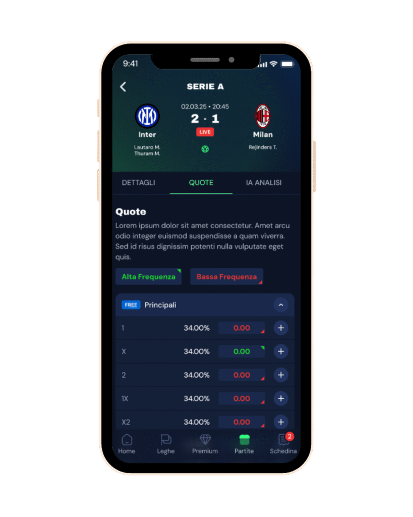 - Previsioni su ogni match basate sull'AI